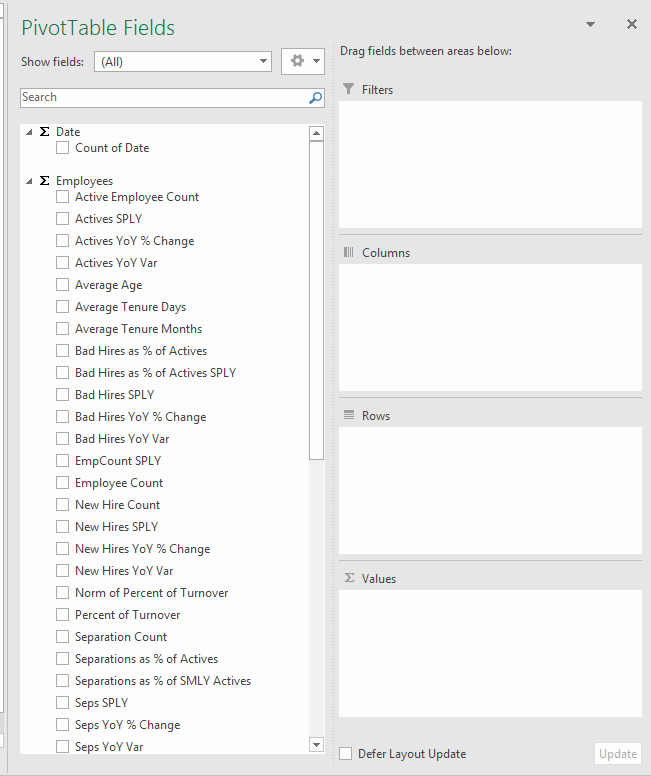 Excel ouvrira ensuite un tableau croisé dynamique vide, attaché au modèle de données sous-jacent. Vous pourrez alors créer un tableau croisé dynamique basé sur ces données.