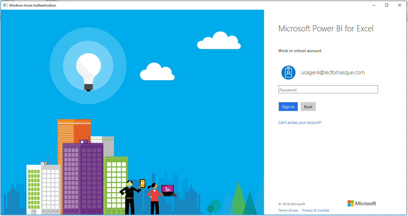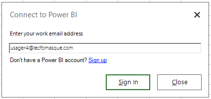 Entrez le courriel que vous utilisez avec Power BI et cliquez sur Sign In (Se connecter).