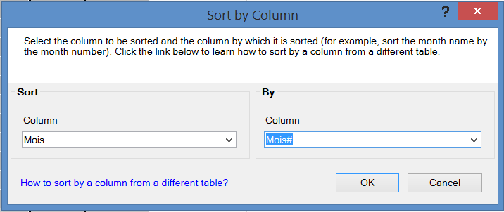 Vous devrez indiquer que votre colonne “Mois” (i.e. le mois en lettres) doit être triée selon la colonne “Mois#” (i.e. le mois en chiffre).