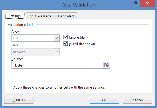 Finalement, nous pouvons créer une liste via l’option de validation de données.