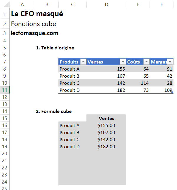 Dans l’article Fonctions Excel: Rangmembrecube (Cuberankedmember) et Valeurcube (Cubevalue), nous avons vu comment utiliser les fonctions cube pour créer une liste d’items (membres) dans Excel. Nous avons notamment spécifié qu’il fallait être prudent avec cette méthode, pour ne pas omettre de nouveaux éléments dans la liste. Cet article vous propose une démarche pour créer une liste dynamique liée à des fonctions cube d’Excel.