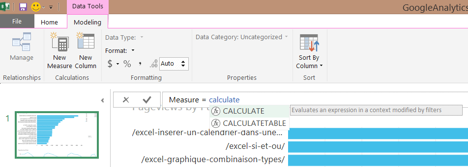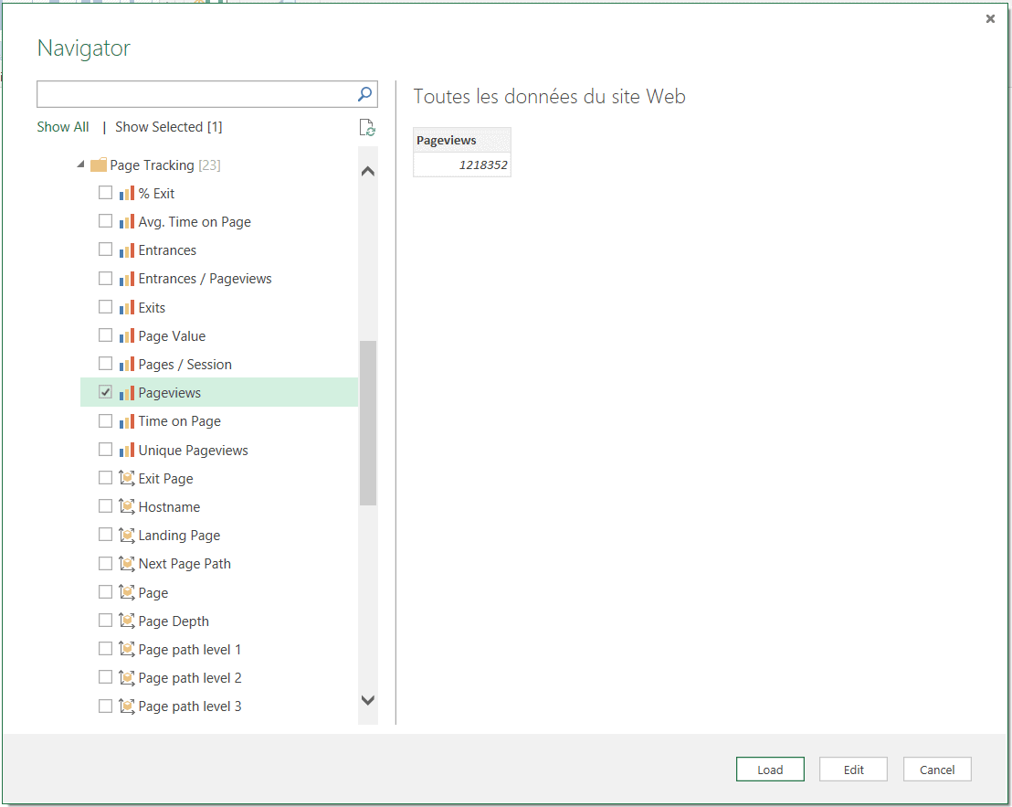 Pour mon exemple, j’ai choisi la mesure “PageViews”.