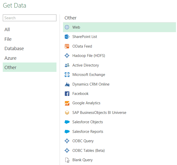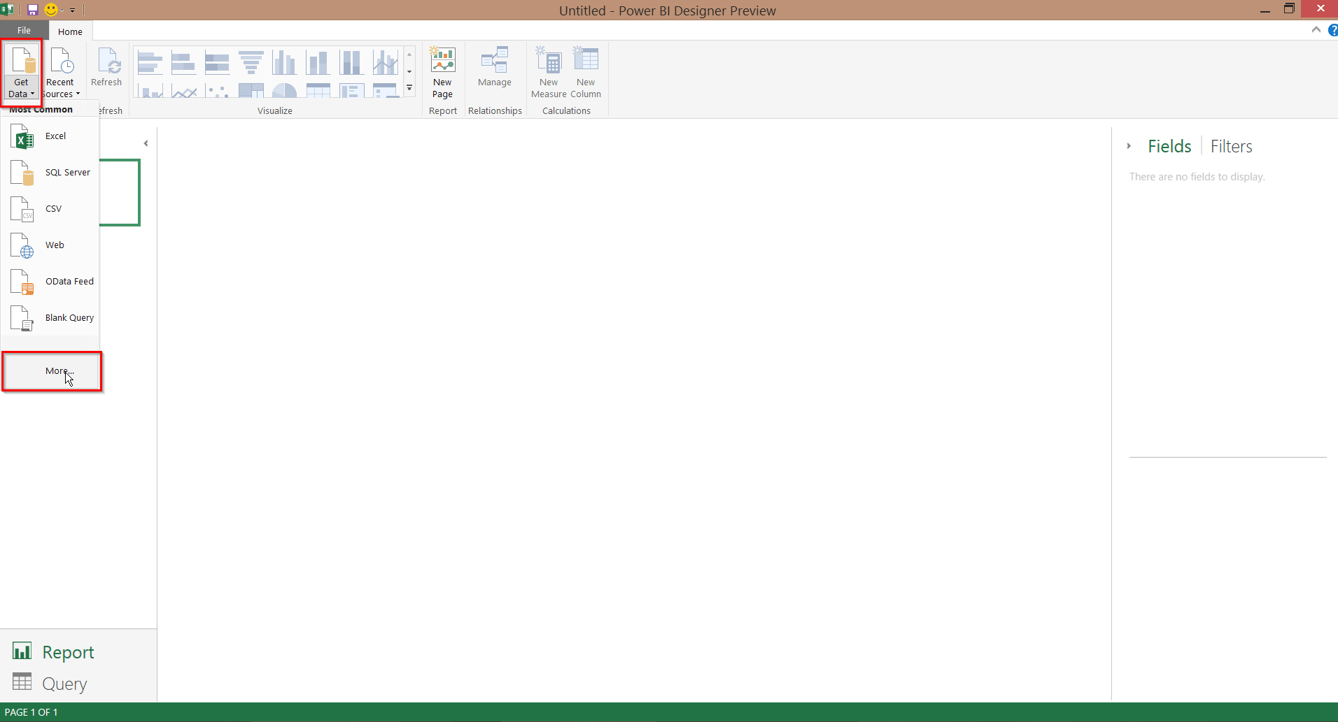 L’option “More” vous permettra de découvrir une variété de sources de données. Microsoft ajoute régulièrement de nouvelles sources/connecteurs.