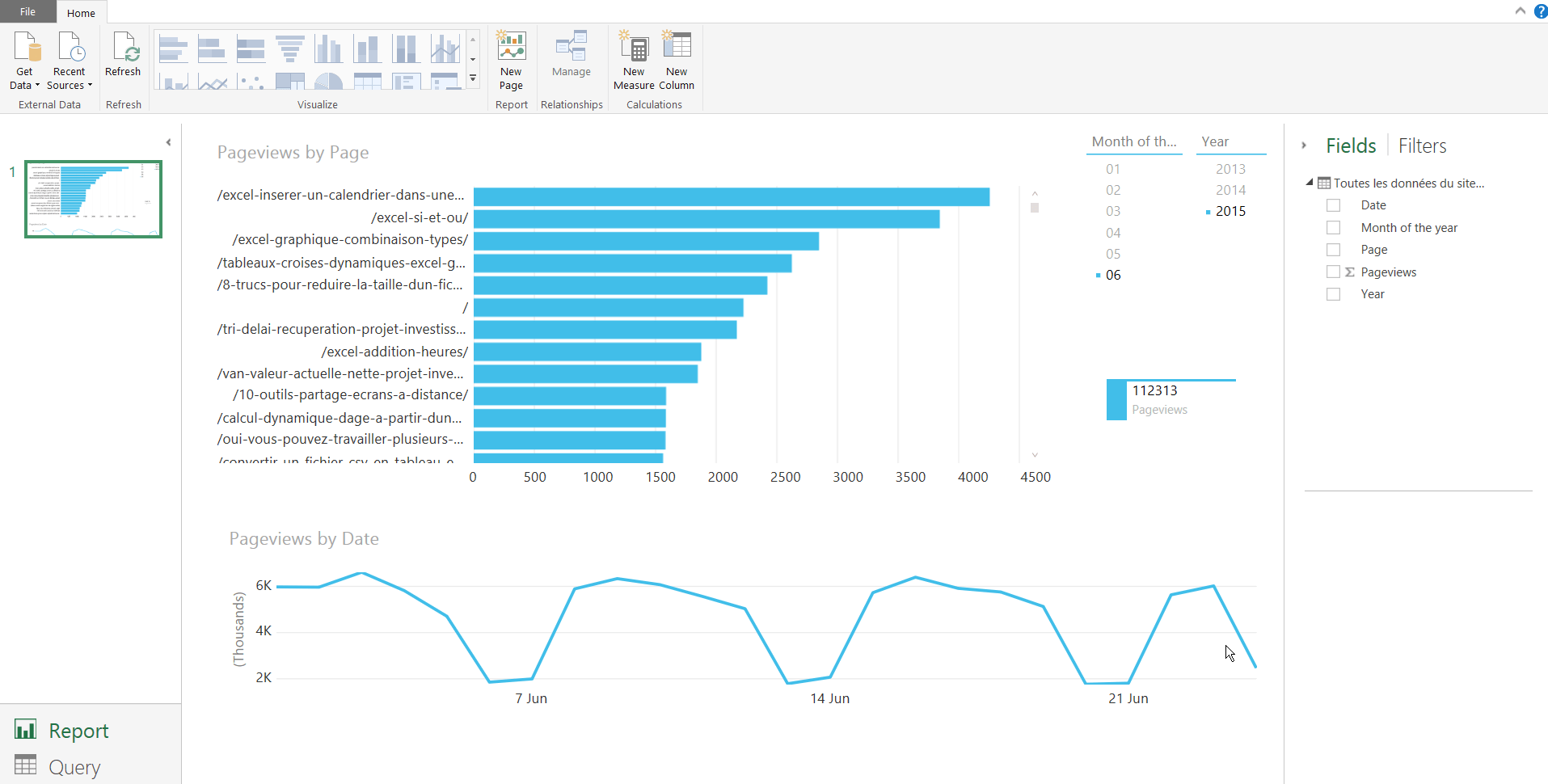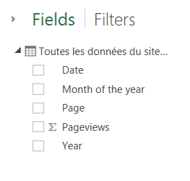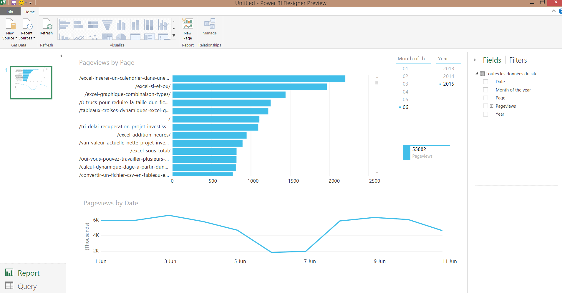 Au final, pour cet exemple, j’ai retenu les dimensions: Page, Date, Month of the year et Year.
