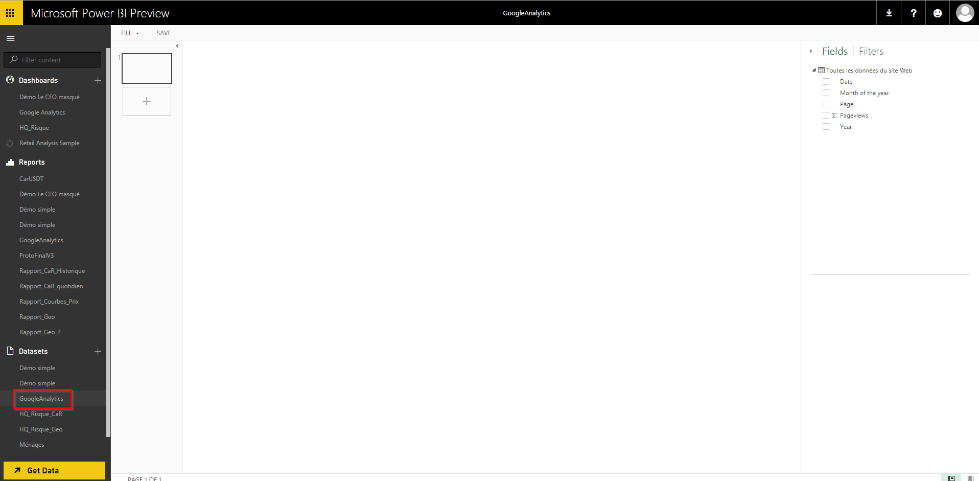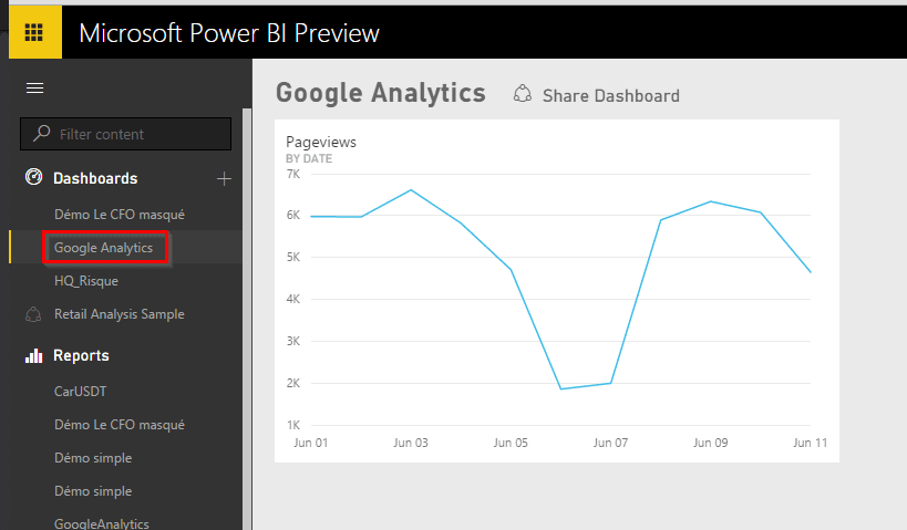 On peut aussi récupérer tels quels les rapports créés dans le Power BI Designer et utiliser les visualisations dans un tableau de bord personnalisé.