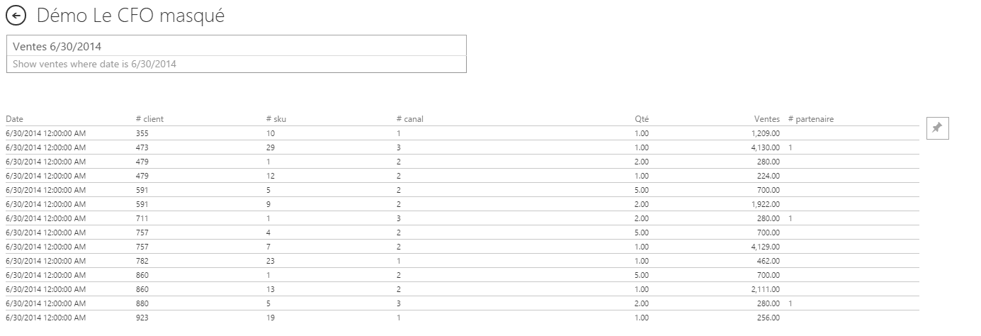 En tapant “Ventes 6/30/2014”, j’obtiens toutes les ventes détaillées au 30 juin 2014.