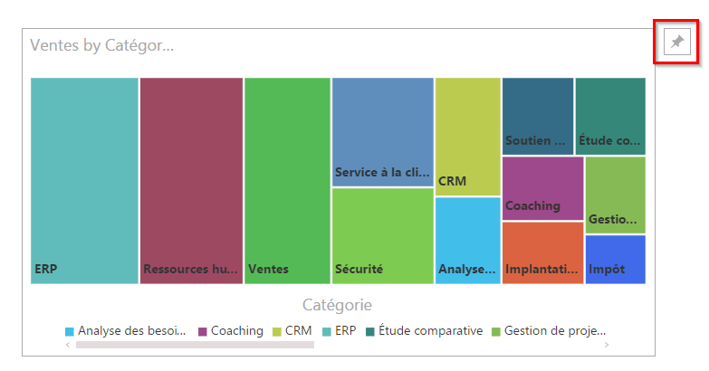 Si je fais maintenant la somme, j’obtiens un seul chiffre, représentant les ventes totales du 30 juin 2014. Je peux ensuite utiliser l’épingle pour ajouter cette information à mon tableau de bord.