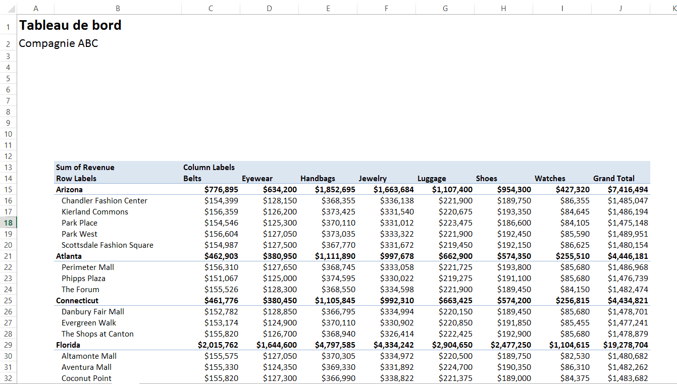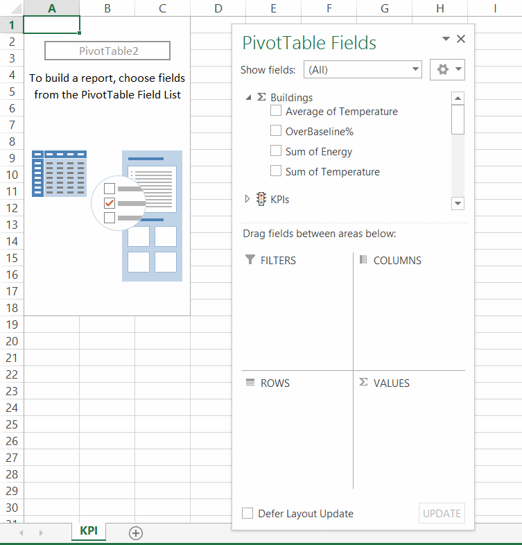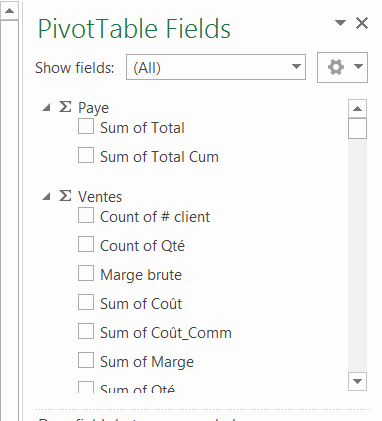 Vous pouvez également accédez aux champs du tableau croisé dynamique et vous pouvez donc ajouter des étiquettes de lignes, des étiquettes de colonnes, des filtres et des valeurs mais vous ne pouvez pas ajouter d’éléments externes comme de nouveaux segments, de nouveaux tableaux croisés dynamiques, etc.