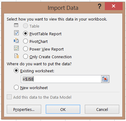 En procédant de cette façon, vous pouvez créer un tableau croisé dynamique, un graphique croisé dynamique, un rapport Power View (cela suppose que votre version locale d’Excel possède Power View) ou simplement une connection avec le modèle de données.