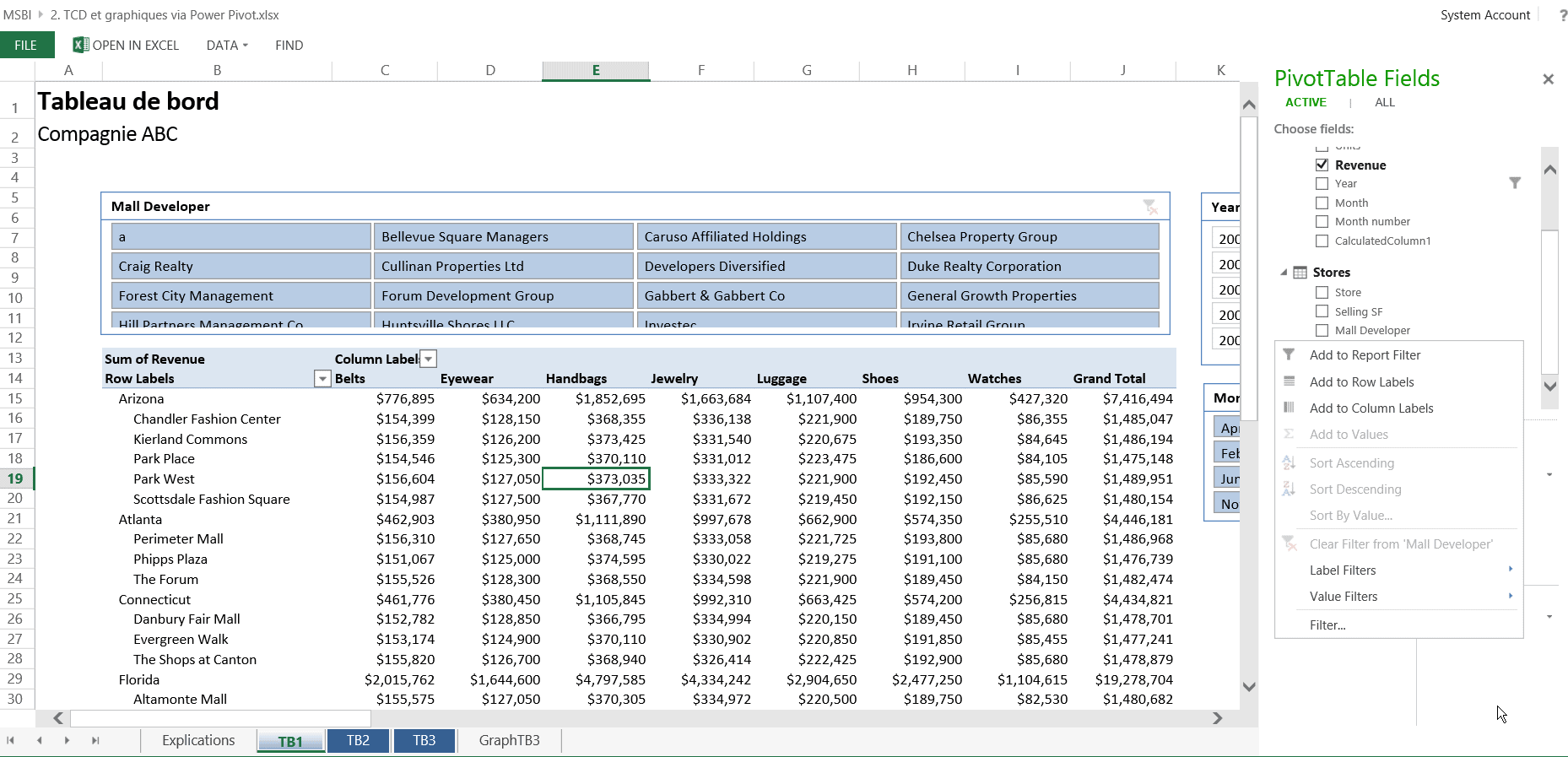 Création de visualisations Power View