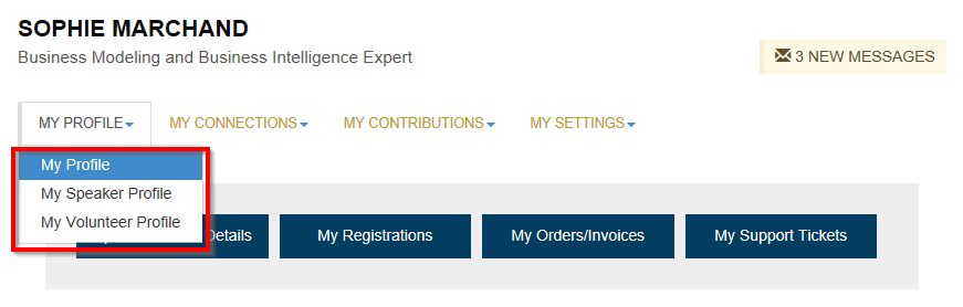 Ensuite, vous pouvez publier jusqu’à 3 types de profils sur le site web: un profil d’usager, un profil de conférencier et un profil de bénévole.