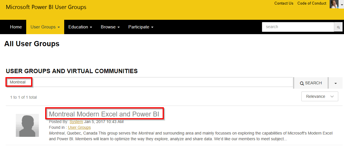 - De même, si vous faisiez partie de l’ancien groupe d’usagers Montreal Modern Excel and Power BI, vous ne serez pas transféré automatiquement dans le nouveau groupe d’usagers Montreal Modern Excel and Power BI sur le nouveau site web