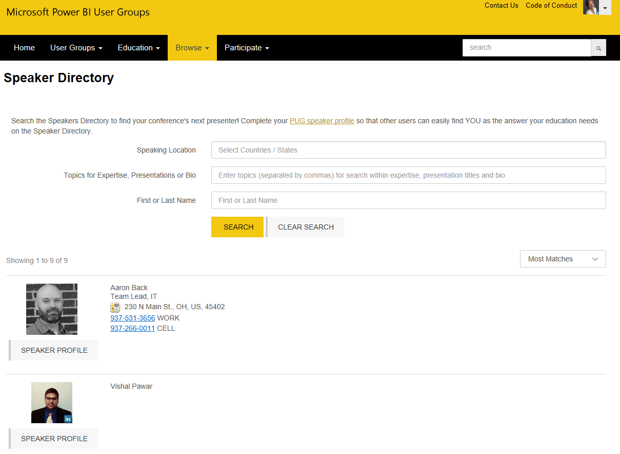 Lorsque vous créez un profil de conférencier, vous apparaissez dans le répertoire des conférenciers. À l’aide du moteur de recherches, les organisateurs des différents groupes d’usagers, peuvent donc trouver votre profil et faire appel à vos services.