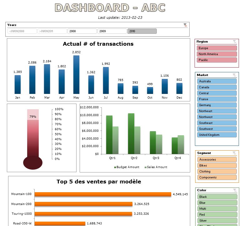 Lors de cette formation, l’apprenant passe à un niveau supérieur en explorant toutes les possibilités d’automatisation et de personnalisation des tableaux de bord, offertes notamment par les “tableaux Excel” et les “segments Excel”. L’apprenant apprend également à maîtriser les graphiques sparklines, le format conditionnel et les contrôles de formulaires, ce qui lui permet d’élaborer des tableaux de bord sophistiqués. Un module de cette formation est également consacré à un ensemble de trucs et conseils par rapport au traitement de séries de données dans les graphiques et la personnalisation avancée de graphiques. Un autre module se consacre à l’introduction du “BI Semantic Model” de Microsoft”, i.e. qu’il présente à l’apprenant les possibilités offertes par différents add-ins Excel en termes d’importation et traitement de données (Power Query), de modélisation de données (Power Pivot) et de visualisation de données (Power View). Enfin, l’apprenant reçoit également une série d’indicateurs de performance par secteurs d’activités et par département d’entreprise, dans le but de stimuler sa réflexion, dans l’élaboration de ses propres indicateurs de performance.