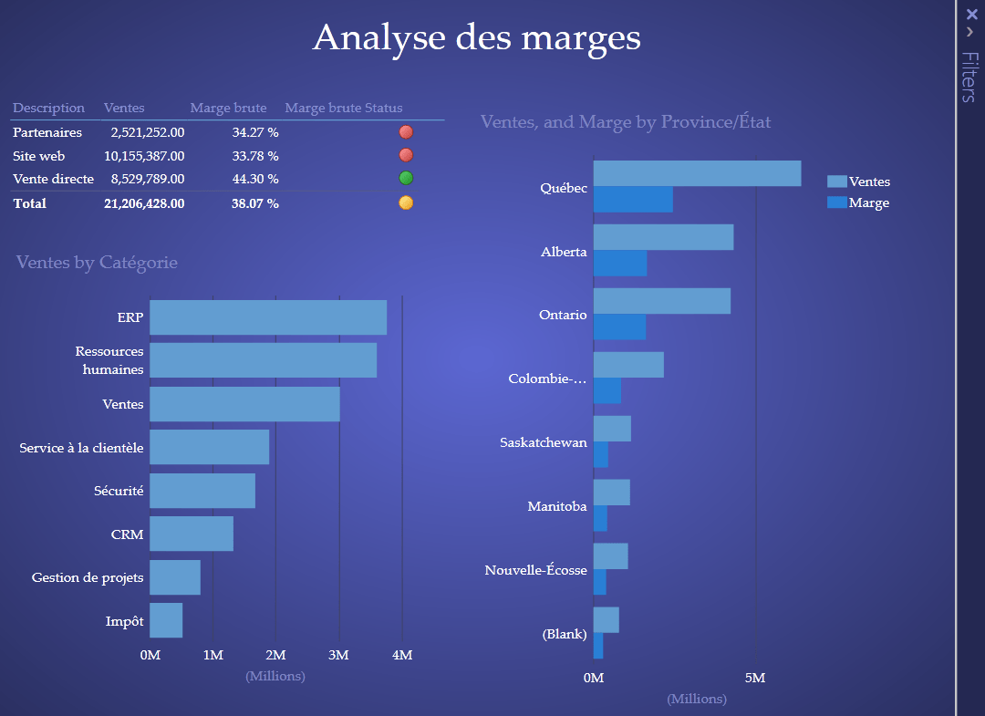 Nous avons procédé de la même façon pour calculer l’ensemble des ventes et ainsi obtenir un ratio de marge brute global.