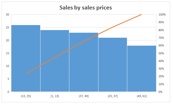 Il a toujours été possible de tracer des histogrammes dans Excel, avant 2016, mais pas directement via l’interface de graphiques. Vous pouvez jeter un coup d’oeil, par exemple, à l’article suivant: Graphique Excel : Distribution des unités vendues. Ci-bas, j’ai utilisé le graphique histogramme pour tracer la distribution des ventes par prix de ventes.