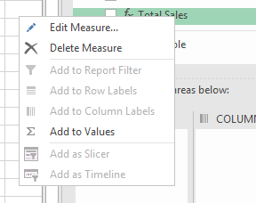 D’abord, les mesures DAX se nomment désormais Measures et non plus Calculated Fields. Vous pouvez créer une nouvelle mesure directement à partir de la liste de champs d’un tableau croisé dynamique, en cliquant sur le bouton droit de votre souris.
