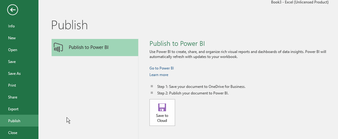 Finalement, il est désormais possible de publier un fichier Excel dans Power BI (online) en s’assurant d’abord d’enregister le fichier dans OneDrive for Business d’abord.