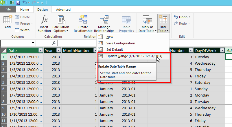 Il est également possible, avec Excel 2016, de créer une table de dates, directement à partir de Power Pivot.