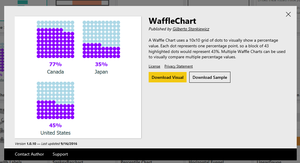 Power BI vous offre la possibilité de créer une visualisation en gaufre. Celle-ci n’est toutefois pas disponible dans les visualisations intégrées dans Power BI. Elle est plutôt disponible à partir de la galerie d’éléments visuels personnalisés.