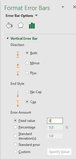je suggère de mettre “No Cap” (“Sans empattement” en version française) dans les barres d’erreur, pour éviter les petits traits en bout et mettre à la place dans les options de barre d’erreur, ligne : un type de flèche finale arrondi.