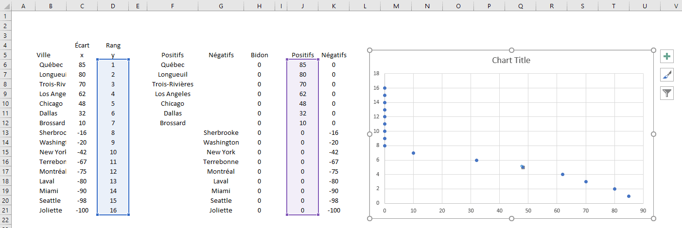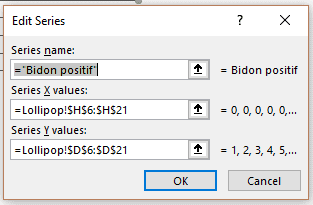 Assurez-vous d’insérer la colonne Y dans les Y et la colonne Positifs dans les X.