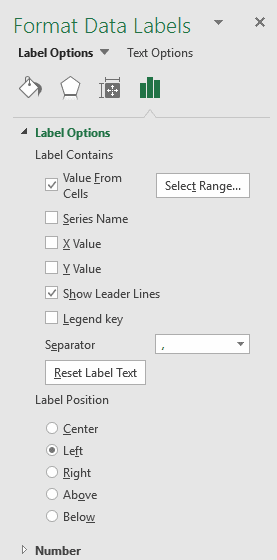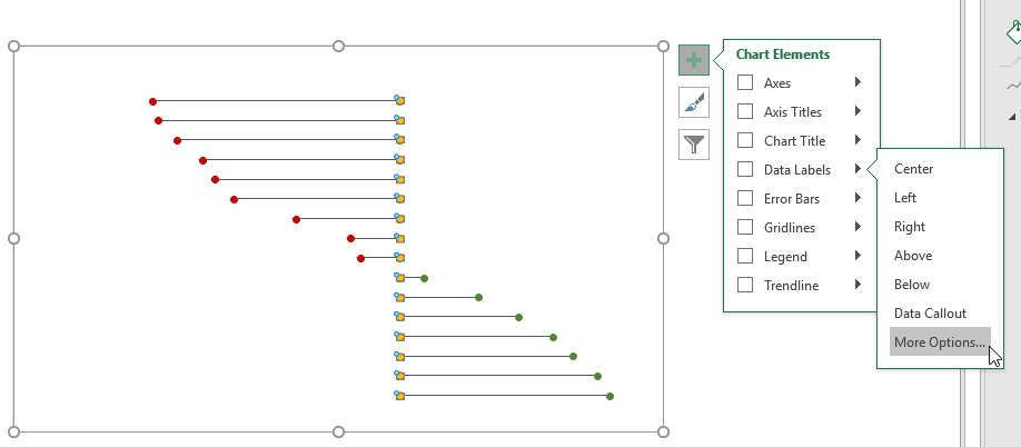 Sélectionnez ensuite l’une de vos nouvelles séries bidons et cliquez sur MORE OPTIONS/PLUS D’OPTIONS dans le menu DATA LABELS/ÉTIQUETTES DE DONNÉES.