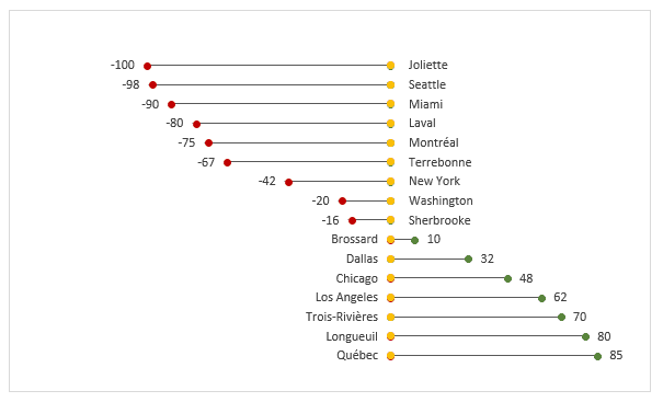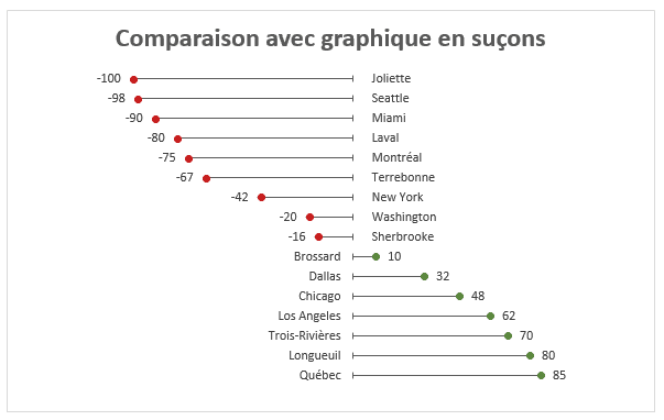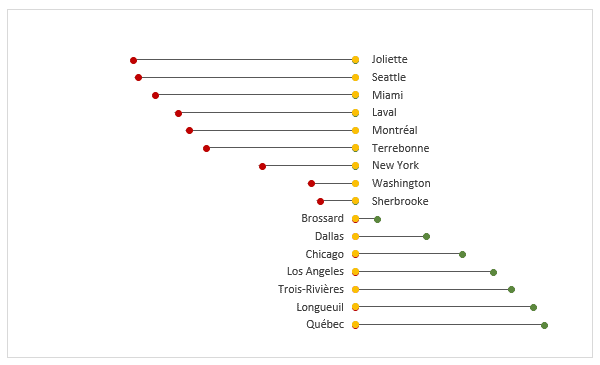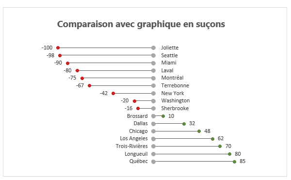 L’article suivant vise à expliquer comment créer des graphiques lollipops dans Excel (suçons). Voici le résultat recherché: