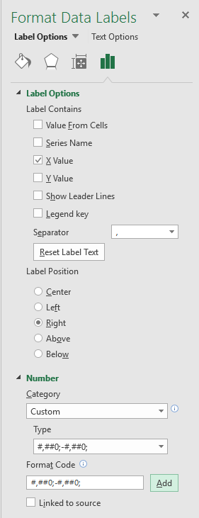 Répétez le tout avec les données négatives mais cette fois-ci, assurez-vous que les étiquettes apparaissent du côté droit de l’axe des Y.