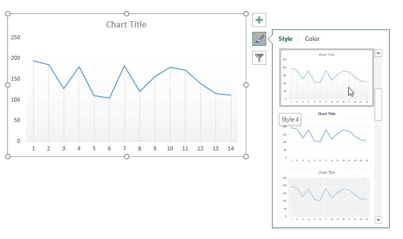 D’abord, il faut savoir que dans Excel 2013 et ses versions ultérieures, plusieurs options sont disponibles via le bouton + à la droite de chaque graphique.