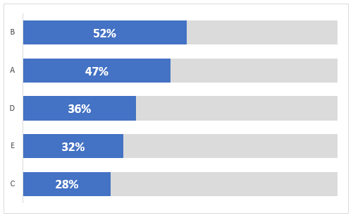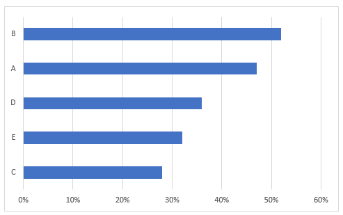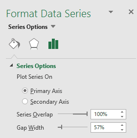 Pour réaliser ce graphique, vous pouvez d’abord tracer le graphique à barres régulier, présenté ci-dessus. Ensuite, vous pouvez modifier la largeur entre les séries de données (Gap Width). Dans cet exemple, nous avons utilisé 57%.