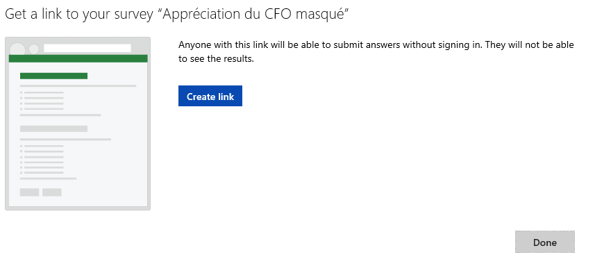Vous devrez cliquer sur Create link (Créer un lien) afin d’obtenir un URL pour partager votre sondage en ligne.