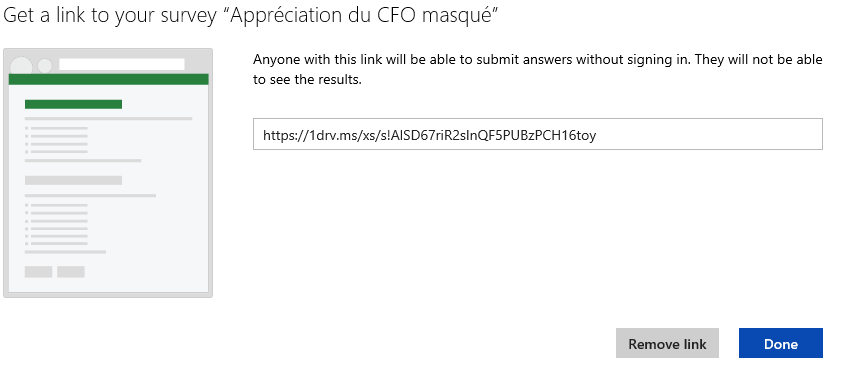 En cliquant sur Share Survey (Partager le sondage), vous verrez apparaître la fenêtre suivante:
