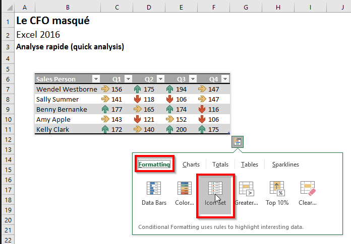 L’option d’analyse rapide propose d’autres options comme par exemple des options de mise en forme conditionnelle.