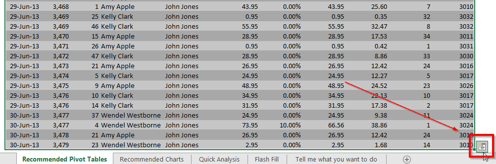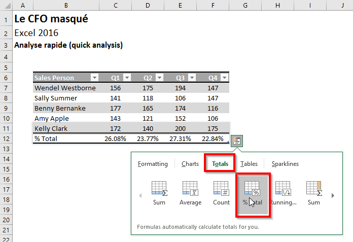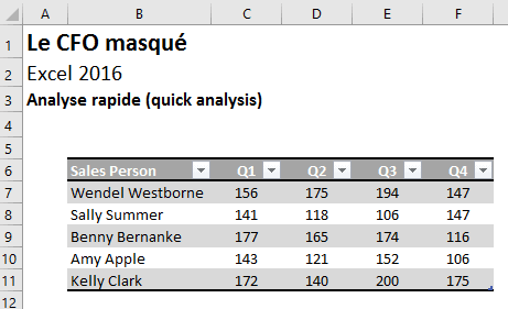L’analyse rapide dans Excel pour les tableaux croisés dynamiques