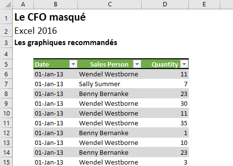 Comme pour les tableaux croisés dynamiques, il existe une option qui ne concerne que les recomandations de graphiques. Celle-ci se trouve dans le menu Insert/Insertion.