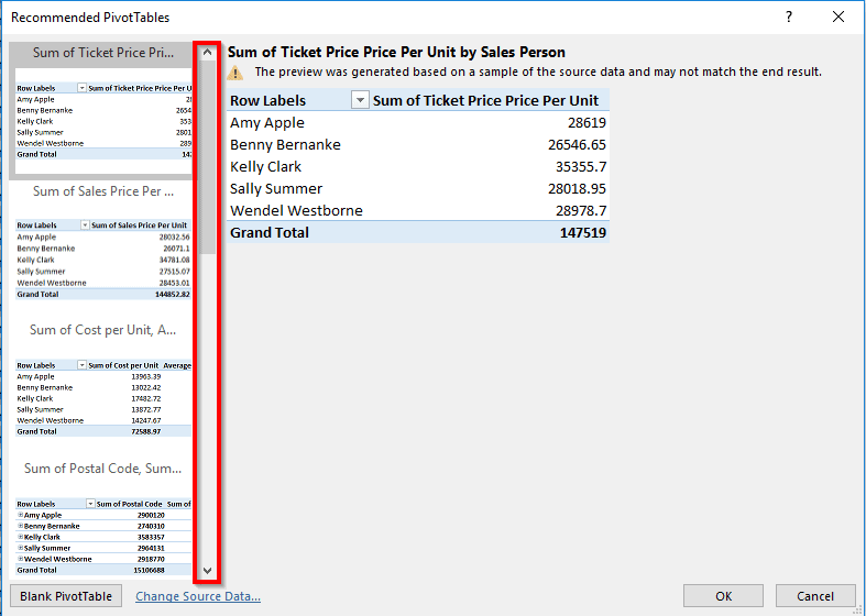 Les recommandations de tableaux croisés dynamiques dans Excel