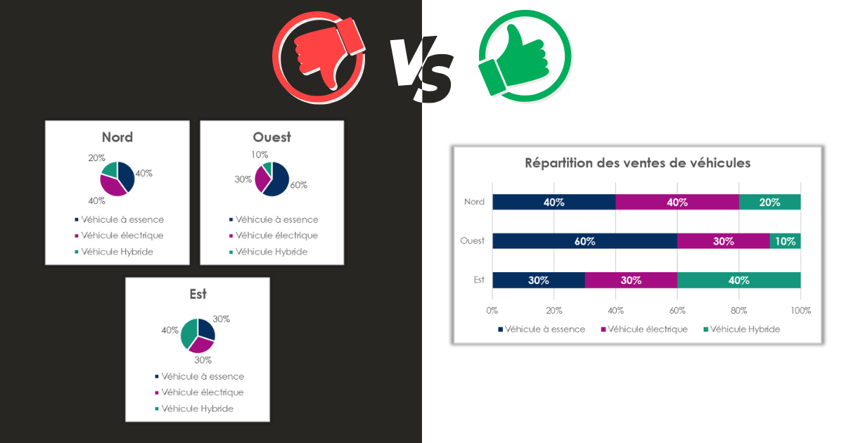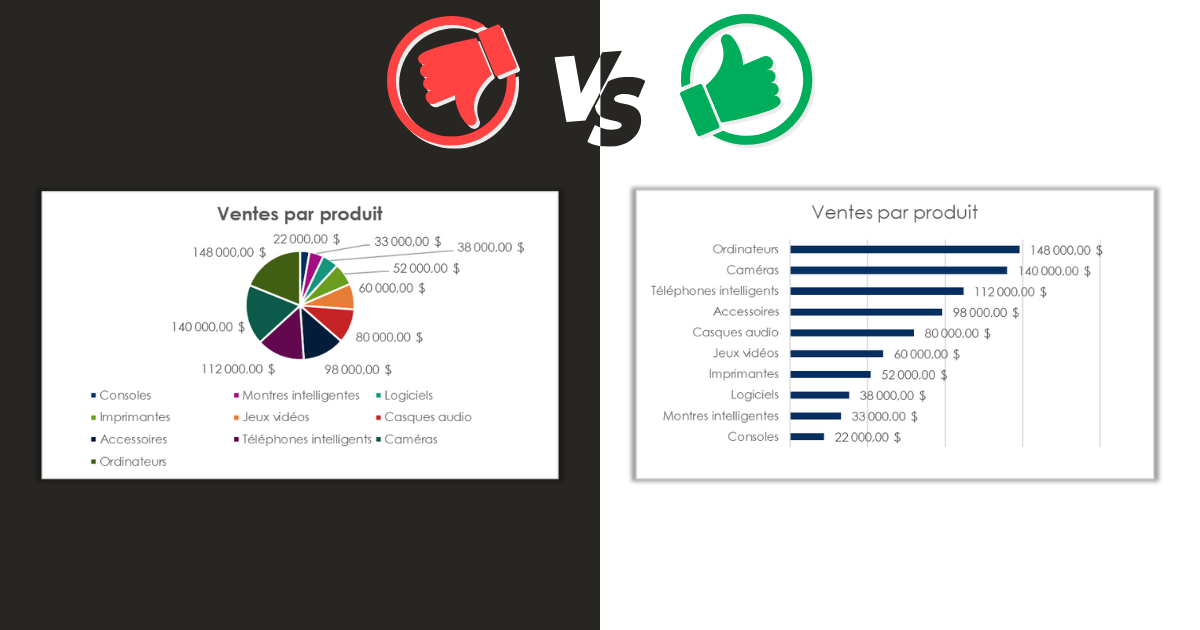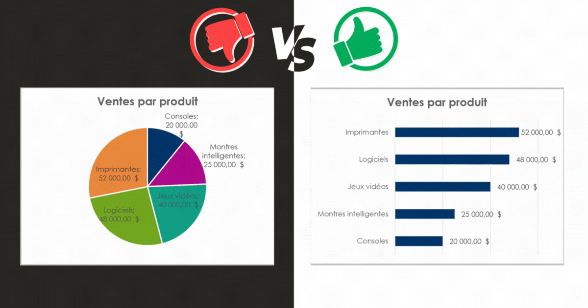 Commençons donc par voir les raisons pour lesquelles le graphique en secteurs pourrait ne pas être le meilleur choix pour présenter efficacement vos données, ainsi que différentes alternatives à envisager. Ensuite, nous verrons quelques bonnes pratiques à respecter pour créer des graphiques en secteurs qui communiquent de façon percutante le message souhaité.