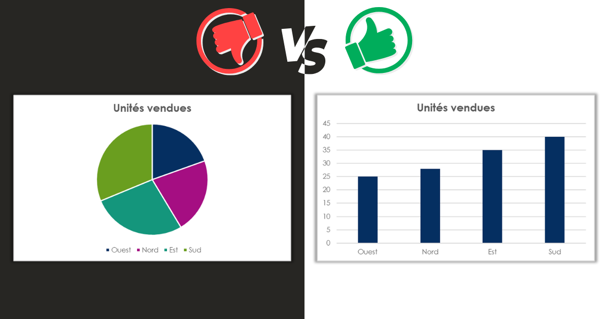 Pour toutes ces raisons, le graphique en secteur n’est pas toujours la visualisation la plus efficace pour représenter vos données, mais dans certains cas, ils demeurent utiles pour montrer la proportion d’une partie par rapport au tout de façon simple et rapide, surtout lorsque vous n’avez que quelques catégories bien distinctes.