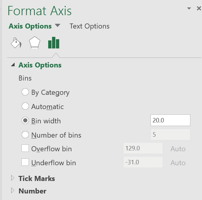 Les options de personnalisation des graphiques histogrammes se concentrent surtout dans les paramètres de format de l’axe des X. C’est là qu’il est possible d’indiquer à Excel si on travaille avec des catégories ou nous et c’est là également que l’on peut spécifier les intervalles de nos distributions de données.