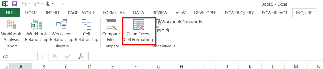 Si vous utilisez la version Excel 2013, vous avez un add-in qui se nomme Inquire. Il propose notamment un outil, Clean Excess Cell Formatting, qui permet de faire le nettoyage de vos formats.