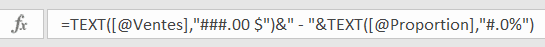 La colonne “Proportion” est calculée à partir de la formule suivante: