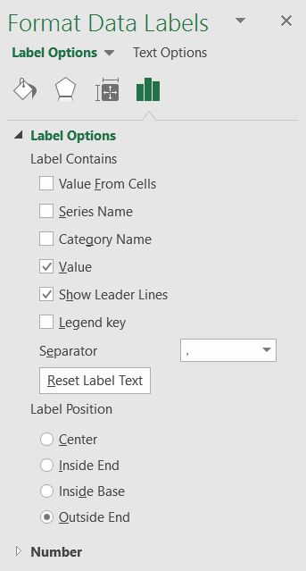 Par la suite, vous pouvez cliquer sur le petit + à la droite de votre graphique et choisir l’option “Data Labels” (Étiquettes de données), puis “More Options” (Plus d’options).