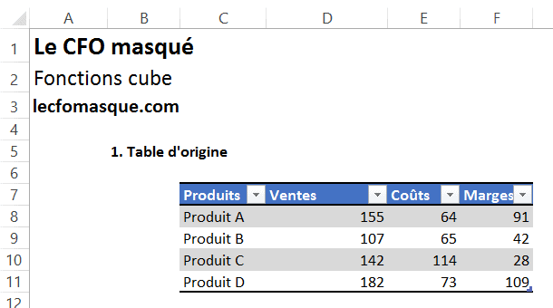 Rappel concernant les fonctions cubes dans Excel