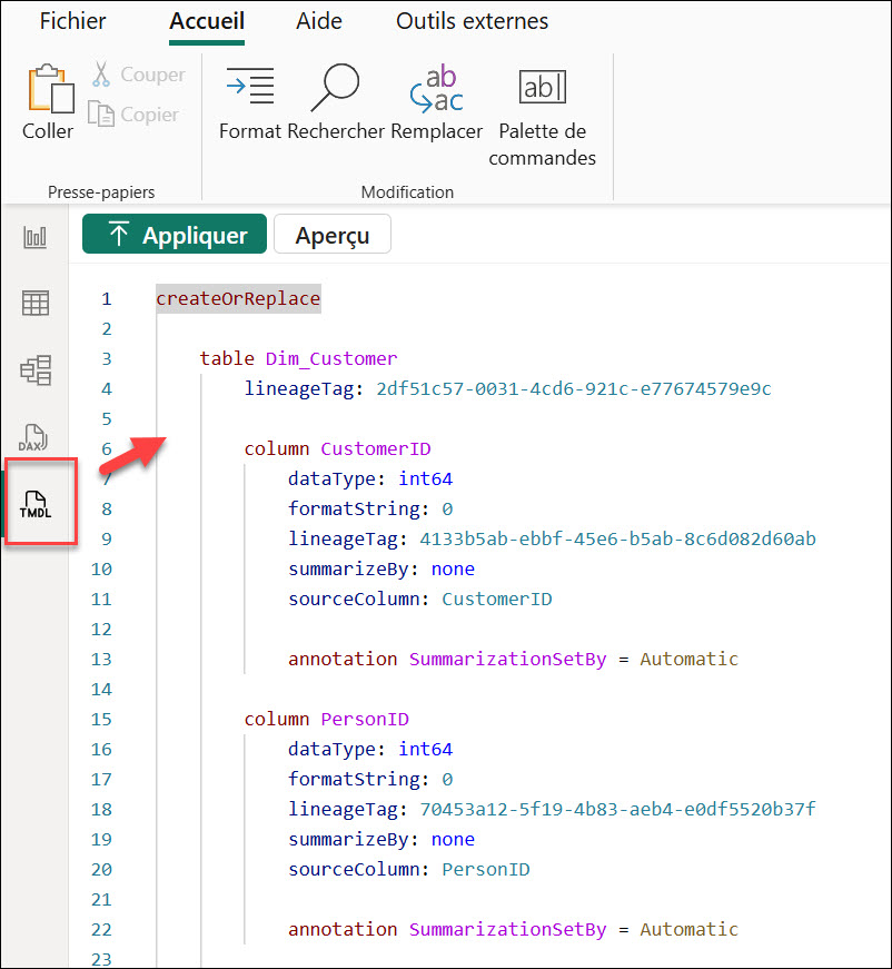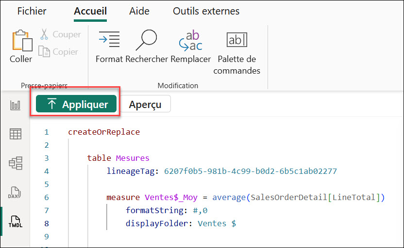 Étape pour modifier le modèle sémantique à partir de la vue TMDL