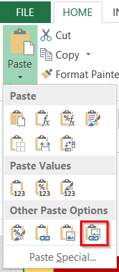 Pour mettre ce graphique en position verticale, vous pouvez utiliser la caméra Excel ou encore sélectionner les cellules comprenant le graphique, appuyer sur CTRL+C, aller dans le menu de collage spécial (paste special) et choisir l’option de collage avec liaison en image. Il s’agit de deux alternatives équivalentes.