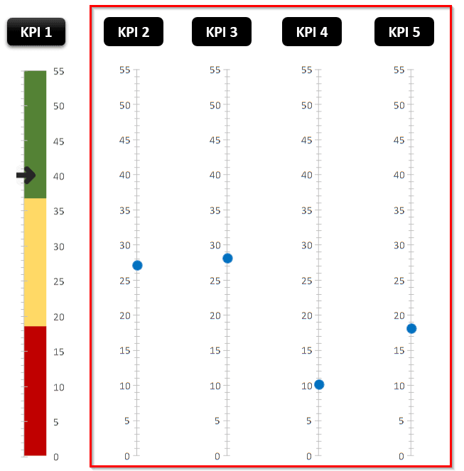 Vous obtiendrez alors un graphique d’indicateurs de performance semblable à ceux que vous voyez ci-dessous pour les KPI 2 à 5.