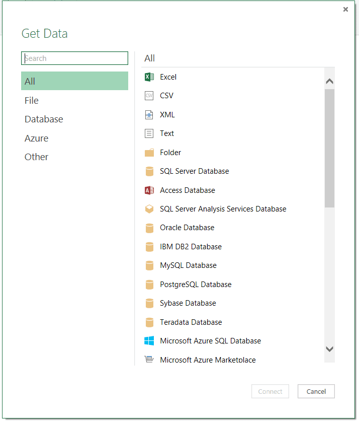 Une autre façon, encore plus simple de créer des relations Many-to-Many est d’utiliser le Power BI Designer. Voici donc le même exemple que le précédent, mais traité avec le Power BI Designer plutôt qu’avec le DAX dans Power Pivot. D’abord, nous devons nous connecter à nos sources de données.