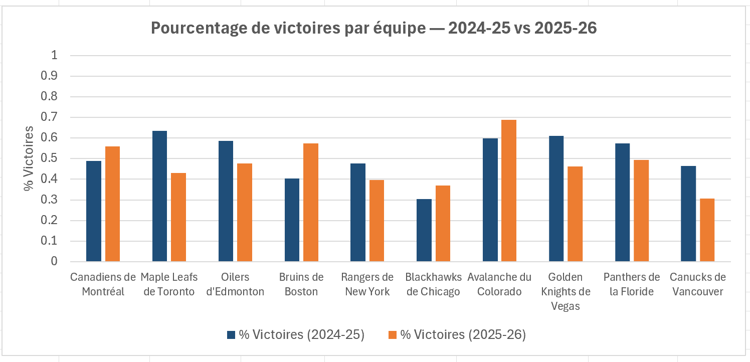 Ensuite, j’ai lui demandé d’ajouter le pourcentage de victoires de ces équipes pour la saison en cours et la saison passée, ainsi que le nombre de matchs joués et gagnés pour chaque saison.
