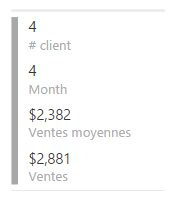 J’ai aussi tracé un graphique Card (carte), avec les informations de ventes):